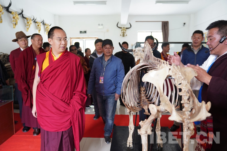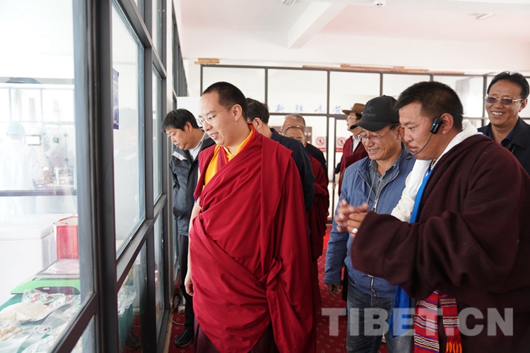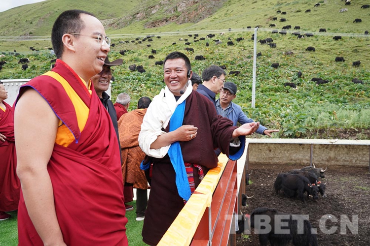 在調(diào)研中,十一世班禪關心的問題得到了很好的解答,他頻頻點頭表示贊許。從娘亞牦牛原種場了解到養(yǎng)殖基地的建成運營情況后,十一世班禪立刻趕往公司加工車間和銷售店,觀摩酥油、奶制品制作過程,了解銷售、帶動牧民增收情況。十一世班禪希望公司能夠?qū)⒓卫璧淖匀粴夂?、土地條件等實際情況與科學實驗相結合,樹立好家鄉(xiāng)民族特色品牌,為草原生態(tài)保護和畜牧業(yè)發(fā)展探索經(jīng)驗。