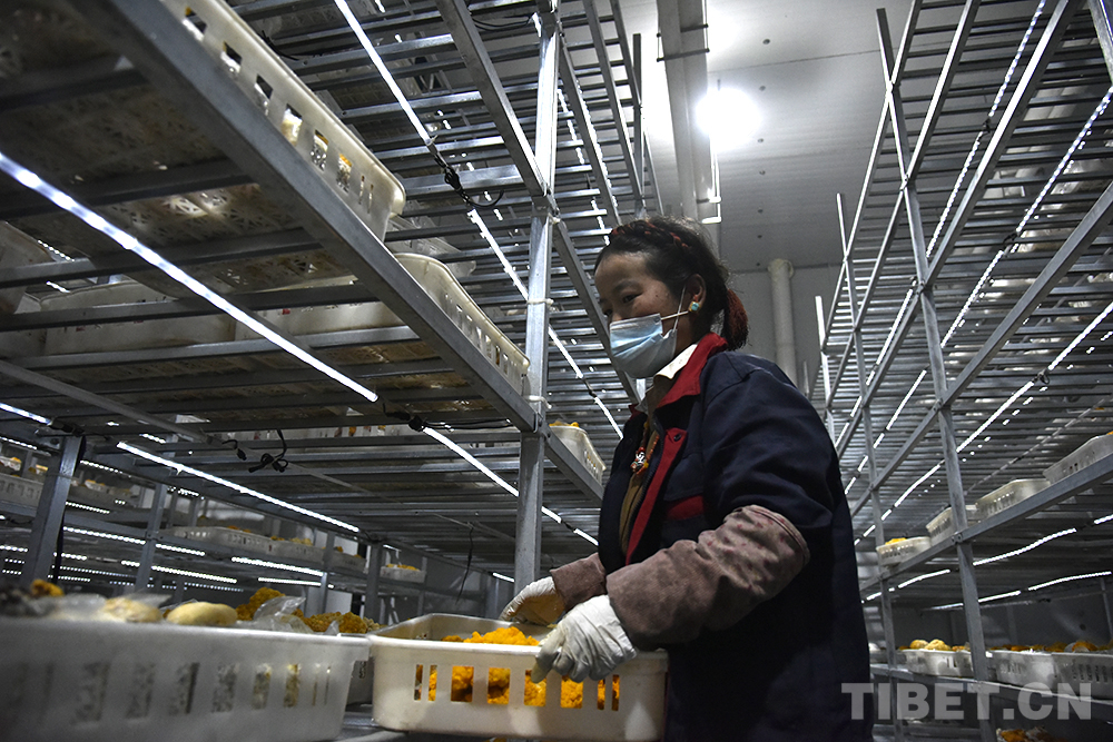 圖為西藏自治區(qū)日喀則市珠峰一見則喜生物科技示范園區(qū)出菇棚里,工人正在采摘金耳 攝影:王媛媛