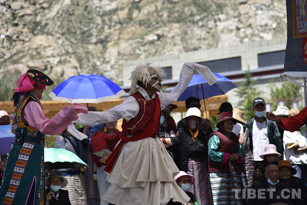 圖為2020年中國拉薩雪頓節(jié)期間,達孜德慶雪藏戲隊上演藏戲《卓娃桑姆》 攝影:王媛媛
