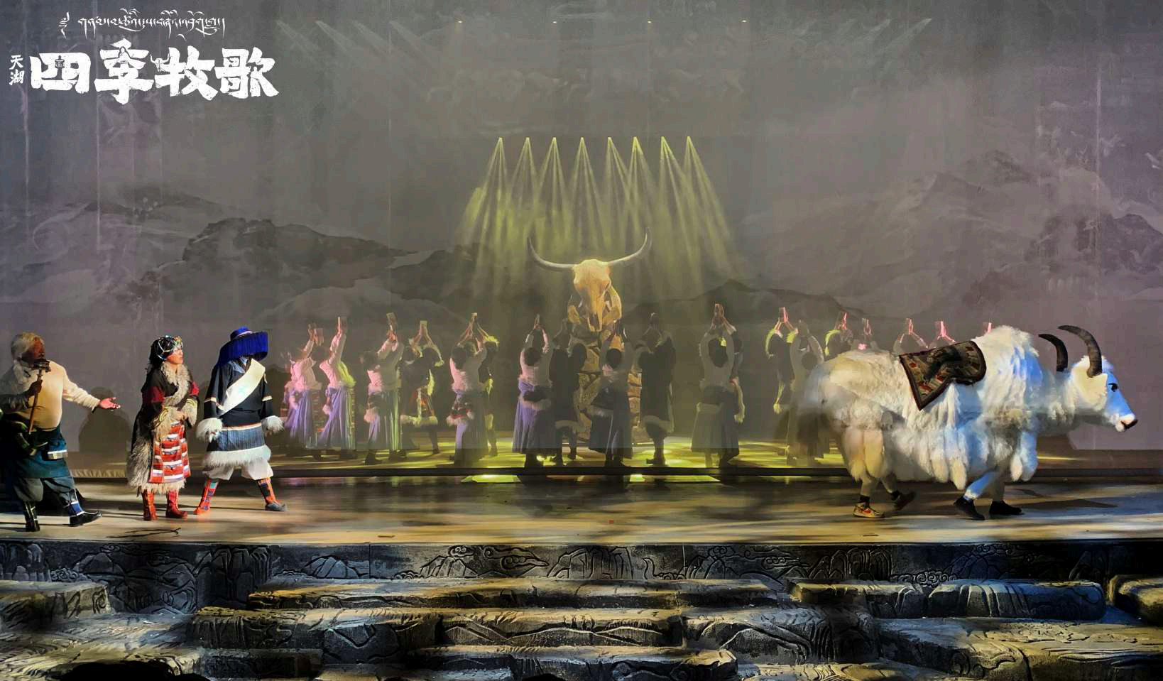 該劇以高原四季為時(shí)間線,淳樸愛情為故事線,以“高原之舟”——牦牛為精神線還原了當(dāng)雄牧區(qū)真實(shí)的生活場景,同時(shí)觀眾還能從舞臺(tái)上不斷更替的四季中,看到當(dāng)雄獨(dú)特的旅游景觀。
