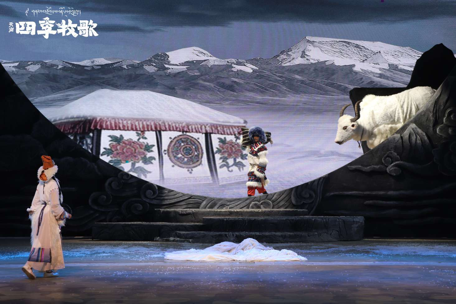 據(jù)悉,《天湖·四季牧歌》是由《序·天語》《春·融冰·相遇》《夏·富饒·相識(shí)》《秋·豐收·相愛》《冬·尋找·相思》《尾聲·天湖牧歌》六部分組成的多幕劇。