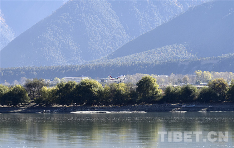圖為一架飛機(jī)從西藏自治區(qū)林芝市米林機(jī)場起飛 攝影:王媛媛
