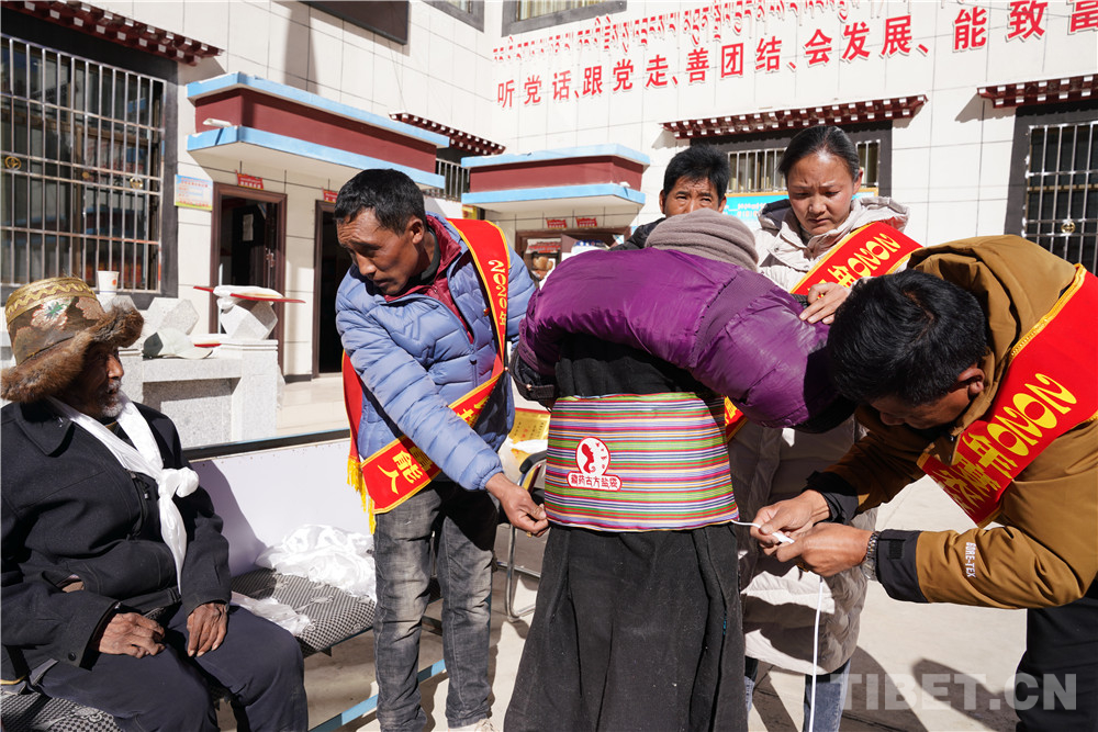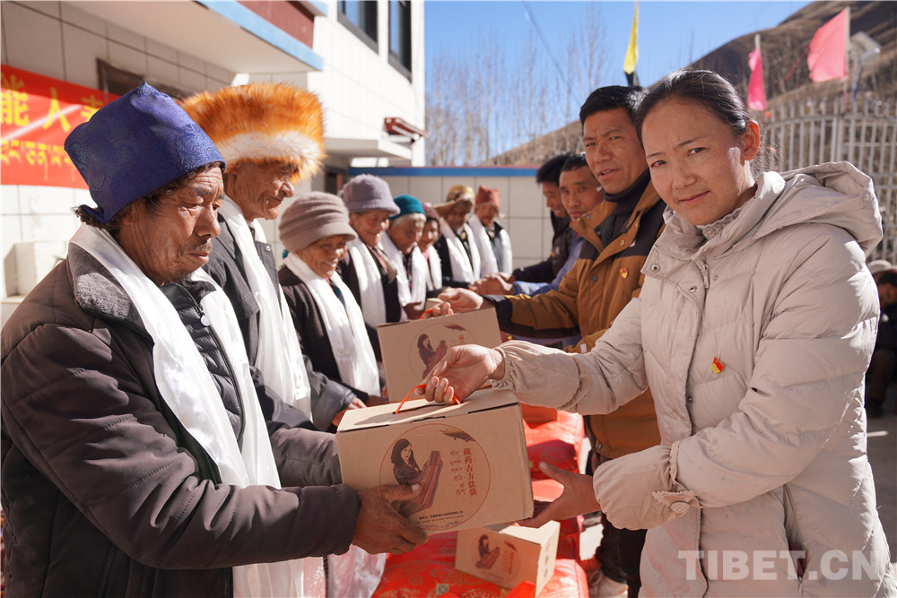 先富起來的人們集中慰問了村里10名老人,送去了10條被子、10套藏藥古方鹽袋等價值近3000元的慰問品,得到了村民們的贊譽(yù)。