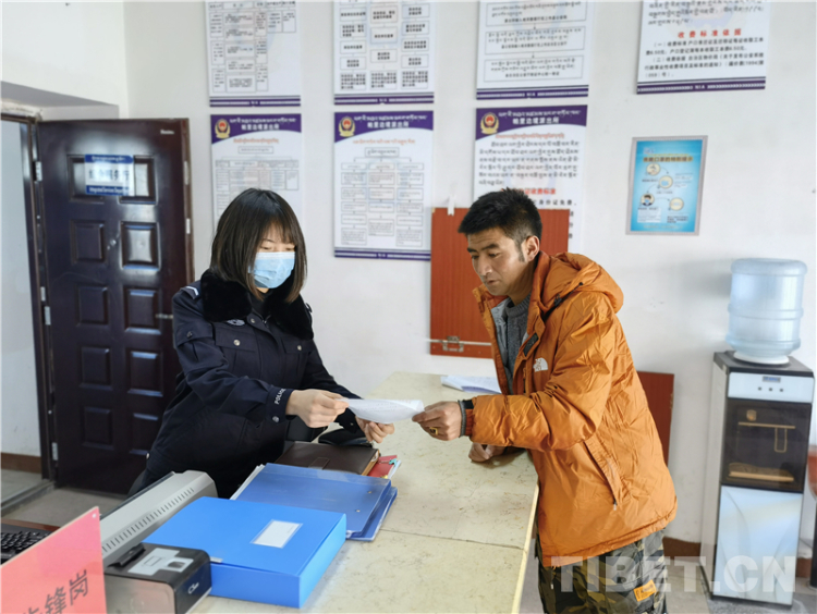 帕里邊境派出所辦證大廳“嚴格執(zhí)法,熱情服務(wù)”四個大字在警徽的映襯下,顯得格外的莊重。作為總站辦理戶籍業(yè)務(wù)的第一試點單位,帕里邊境派出所也發(fā)揮了很好的帶頭作用,普布桑珠副所長帶我們了解了當(dāng)?shù)氐木游瘯?,各類轄區(qū)戶籍證明材料以及通行證、戶口證件辦理的流程等,也讓我們對基層民警的工作有了初步的了解。