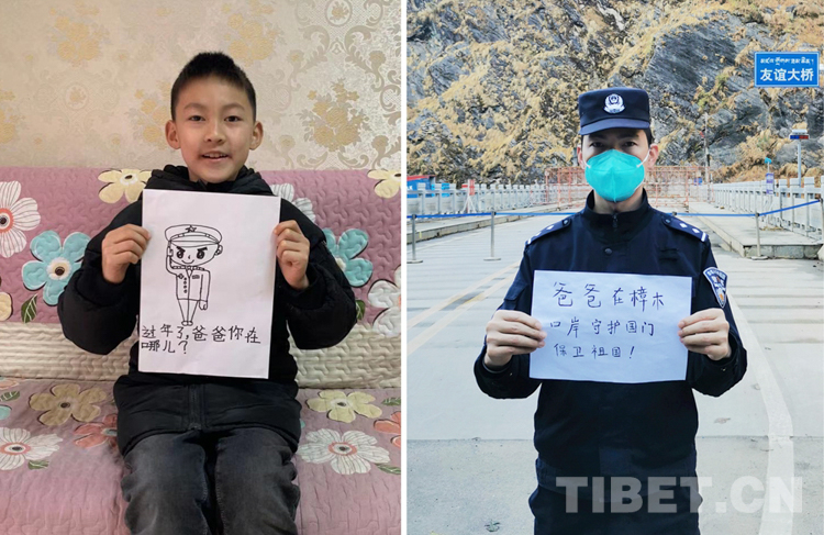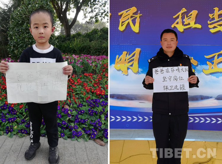 這是一張拼版照片,孩子名叫平措扎西,今年5歲,3年沒和爸爸一起過年了,今年和媽媽在日喀則過年。爸爸格瑪次仁是西藏出入境邊防檢查站阿里邊境管理支隊扎西崗邊境派出所民警,新春將至,他和他的戰(zhàn)友堅守在海拔4400米、位于獅泉河下游的典角村,默默守護著邊境一線的安全穩(wěn)定。