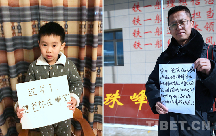 這是一張拼版照片,孩子名叫王躍民,已經(jīng)快六歲了,還沒和爸爸一起過過年。今年他和媽媽、外公外婆在成都過年。爸爸王卿龍是西藏日喀則邊境管理支隊薩嘎邊境管理大隊的教導員,長年工作在海拔4600以上的邊境一線,今年春節(jié)他主動把回家過年的機會讓給了其他戰(zhàn)友,自己又一次選擇堅守崗位!