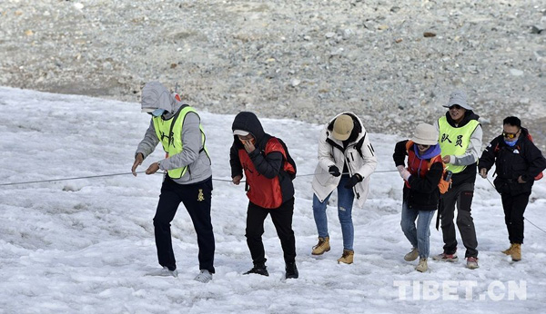 圖為2020年戶外運(yùn)動(dòng)愛(ài)好者在洛堆峰體驗(yàn)雪山攀登