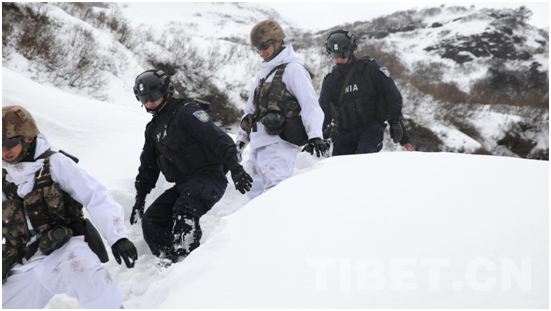 在南伊珞巴民族鄉(xiāng),巡邊隊(duì)伍正冒著大雪,穿過茂密的原始森林,攀爬險(xiǎn)峻的山石,沿著邊境線巡邏。