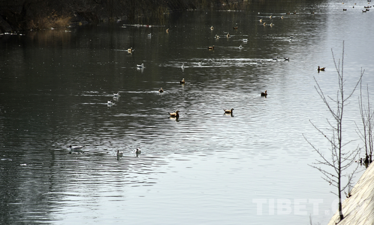 圖為拉薩市太陽(yáng)島附近河面上游弋的水鳥(niǎo) 攝影:王媛媛