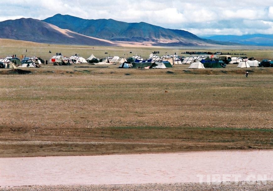 圖為在文部辦事處(現(xiàn)改為尼瑪縣)的布藏河畔舉行賽馬會(huì)時(shí),新搭建起的帳篷城(唐召明1987年攝)