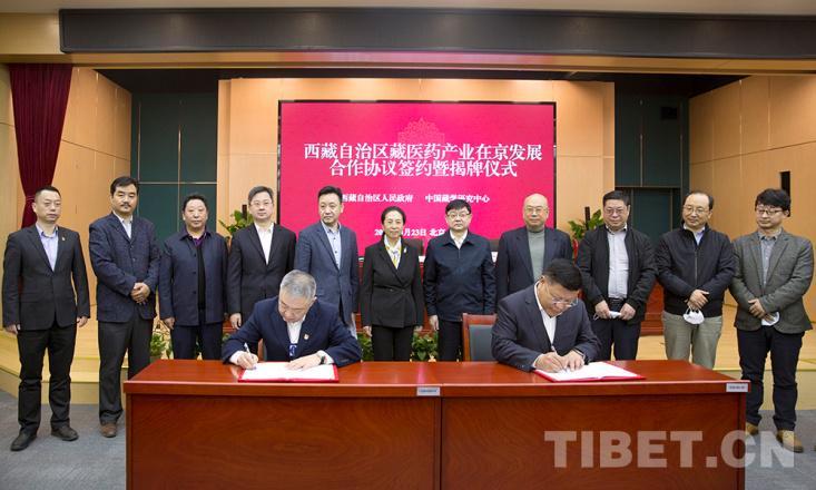 圖為西藏自治區(qū)藏醫(yī)藥產(chǎn)業(yè)在京發(fā)展合作協(xié)議簽約暨揭牌儀式現(xiàn)場(chǎng) 攝影:許娜