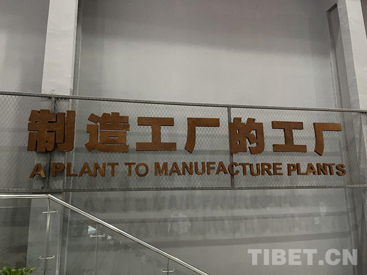 圖為一重展覽館里懸掛的“制造工廠的工廠”標(biāo)語