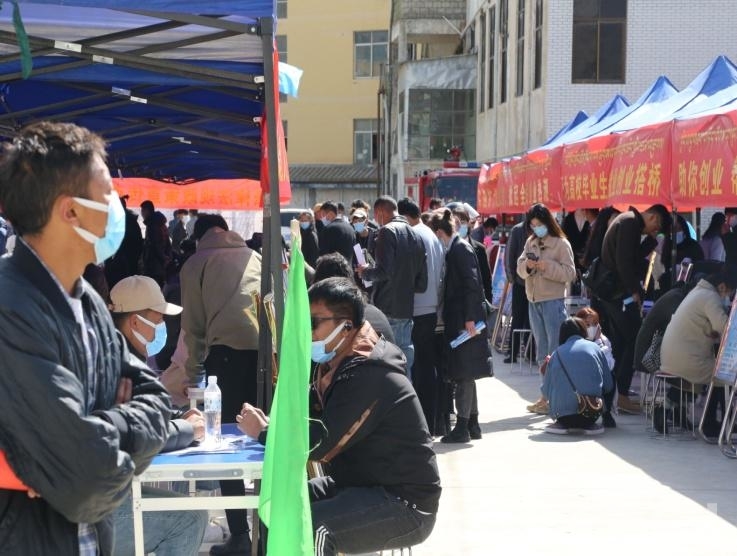 圖為山南市“春風(fēng)行動(dòng)”暨待業(yè)大學(xué)生、城鎮(zhèn)失業(yè)人員專場招聘會(huì)現(xiàn)場。山南市人社局 供圖