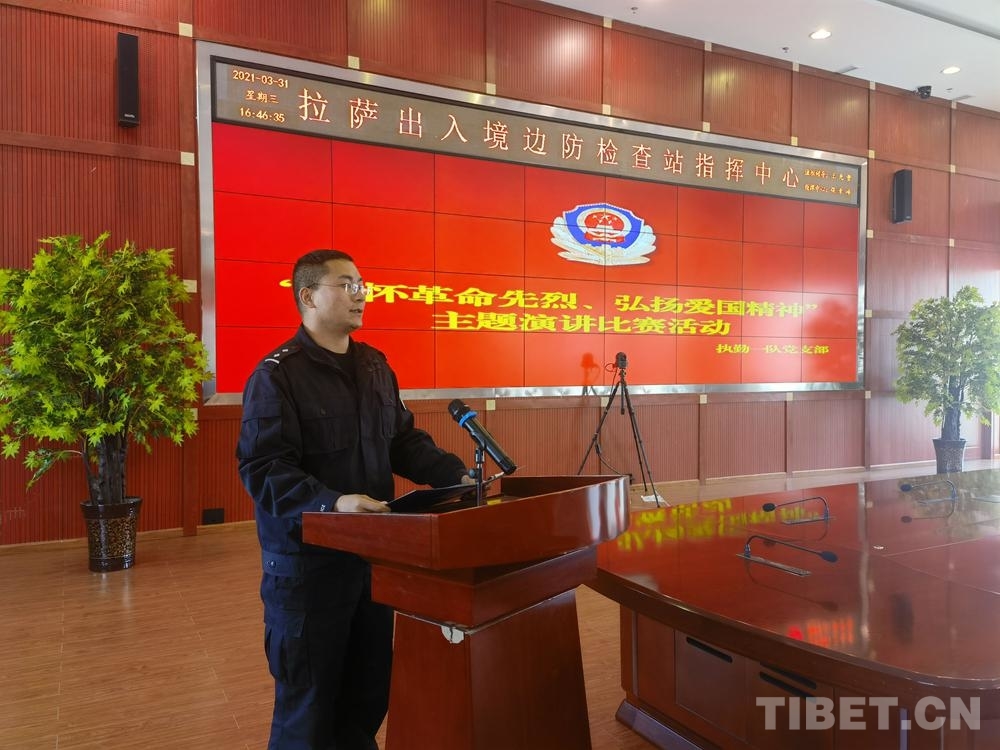 圖為西藏拉薩出入境邊防檢查執(zhí)勤一隊(duì)主題演講比賽現(xiàn)場