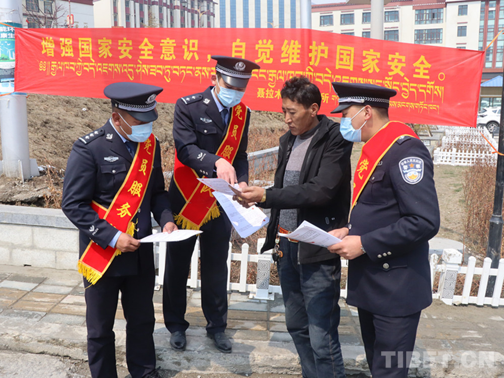 “12339,是國家安全機關(guān)受理公民和組織舉報電話。這條熱線是由國家安全部設(shè)立的,為了方便公民組織向國家安全機關(guān)舉報行為或線索。”在西藏日喀則市的街頭,日喀則邊境管理支隊民警達娃卓嘎為過往群眾講解“全民國家安全日”的相關(guān)知識。