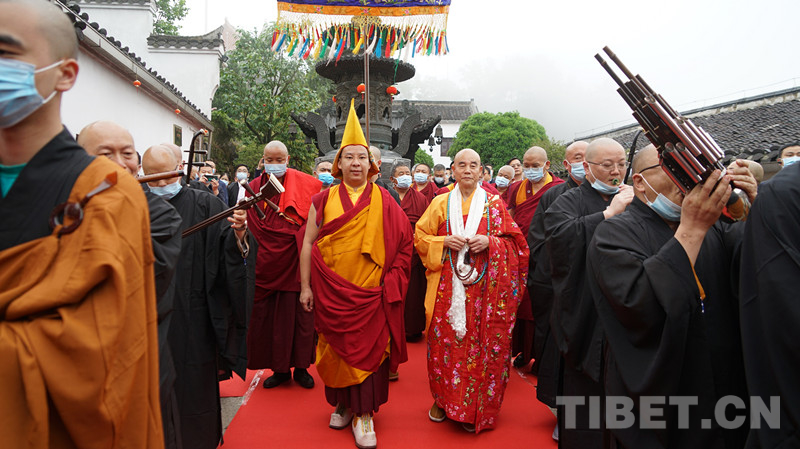 圖為百歲宮僧人用最高禮節(jié)迎接班禪