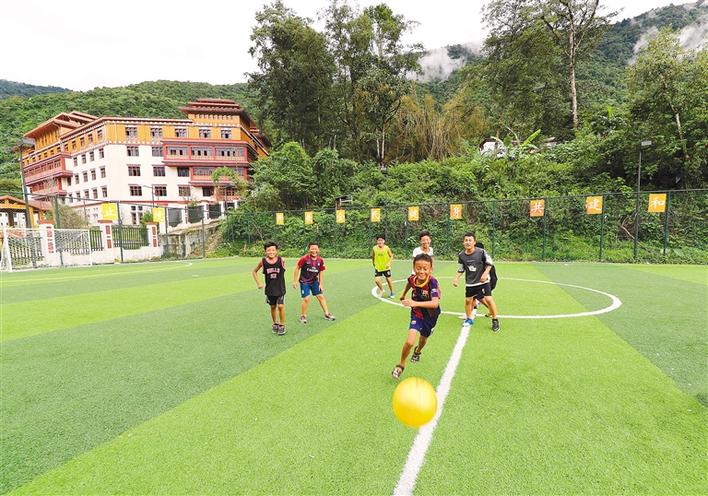 圖為西藏自治區(qū)林芝市墨脫縣墨脫鎮(zhèn)墨脫村的孩子們在家附近的足球場上快樂地踢足球 攝影:西藏日報(bào)記者格桑吉美