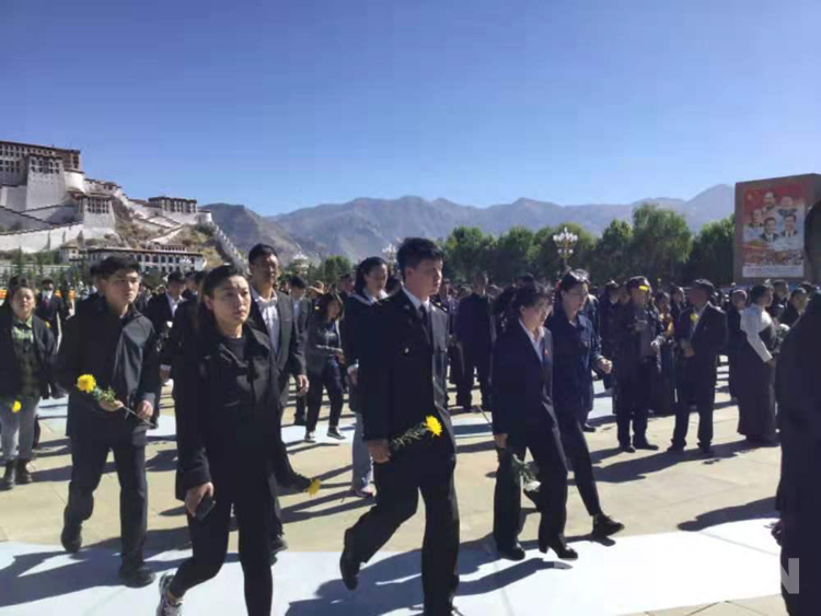 圖為向?yàn)槲鞑睾推浇夥藕蜕鐣髁x革命與建設(shè)事業(yè)英勇犧牲的烈士們默哀 攝影:拉姆