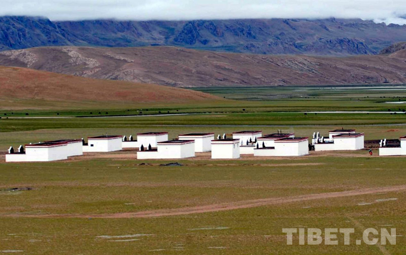 這是在中國石油援助下,雙湖特別區(qū)(現(xiàn)雙湖縣)多瑪鄉(xiāng)果根擦曲村牧民群眾住上了安居新房(唐召明2008年9月16日攝)