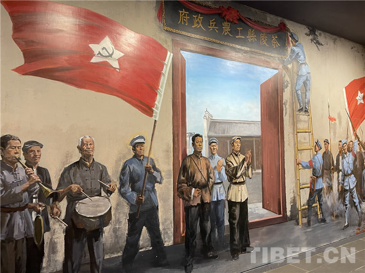 “路漫漫其修遠兮,吾將上下而求索”。建政之路也是一條求索之路。毛澤東號召徹底打碎舊政權,建立人民當家做主的新政權。在毛澤東的指導下,湘贛邊界第一個紅色政權在茶陵誕生。圖為反映茶陵縣工農(nóng)兵政府成立的油畫。