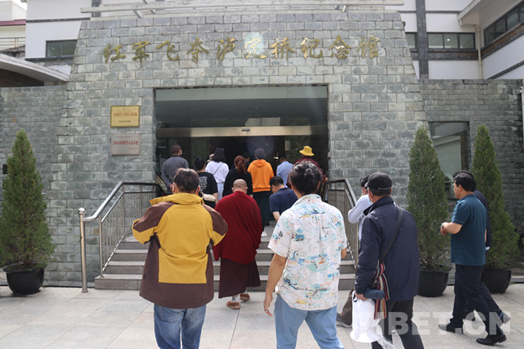 圖為歸國藏胞參觀紅軍飛奪瀘定橋紀(jì)念館。