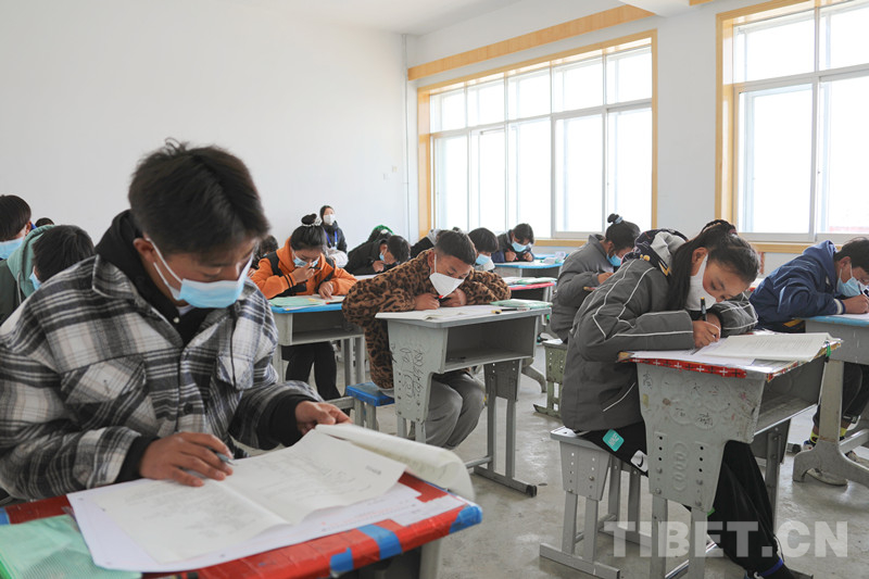 圖為西藏自治區(qū)阿里地區(qū)噶爾縣中學(xué)考點考生在認真答題 攝影:阿旺扎西