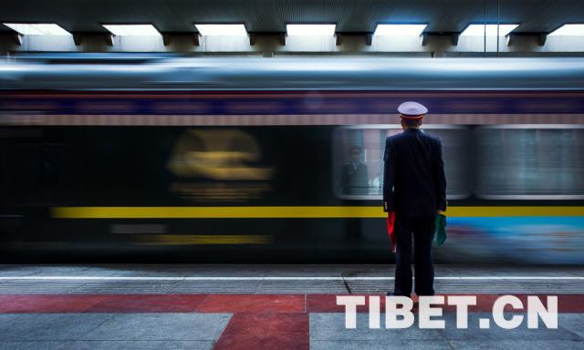 圖為一列火車駛出拉薩站 攝影:趙耀