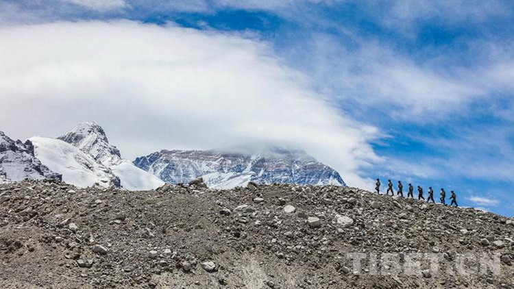 圖為民警們在珠峰核心區(qū)域巡邏