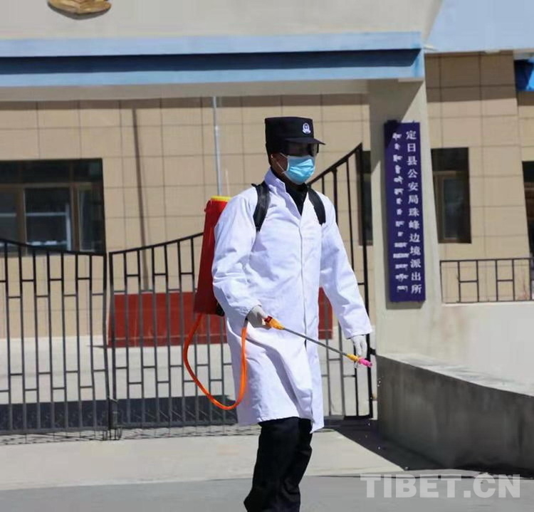 圖為格桑在新冠肺炎疫情期間進(jìn)行消毒