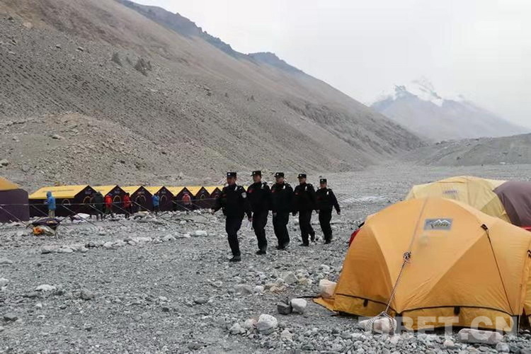 圖為民警們在珠峰大本營巡邏