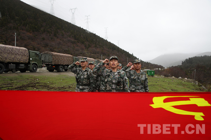 中國(guó)西藏網(wǎng)訊 近日,西藏軍區(qū)某運(yùn)輸旅執(zhí)行川藏線方向的運(yùn)輸任務(wù)車(chē)隊(duì),到達(dá)迫龍?zhí)祀U(xiǎn)時(shí),開(kāi)展了“重溫入黨誓詞、爭(zhēng)當(dāng)保障尖兵”活動(dòng)。“我志愿加入中國(guó)共產(chǎn)黨,我宣誓……”鏗鏘有力的誓言在崇山峻嶺中回蕩。