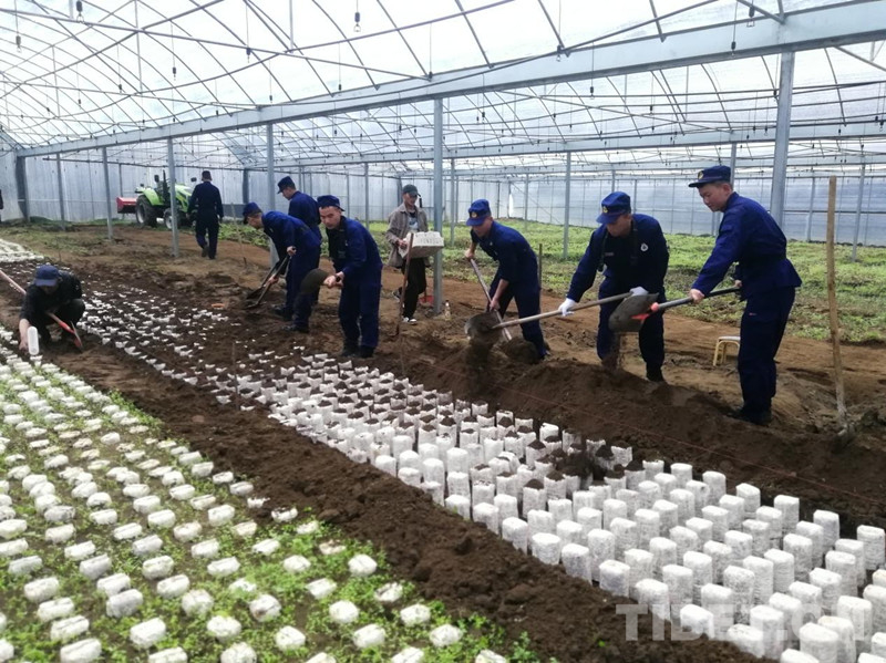米林縣南伊村位于林芝市南部,全村一共擁有36個大棚,需要種植14萬株靈芝菌包,但是全村38戶167人中,老人小孩居多,青壯勞動力只有70個,勞動力匱乏是南伊村的真實寫照。得知這一情況后,作為黨支部共建單位的米林縣森林消防中隊主動靠上去,組織指戰(zhàn)員走進(jìn)田間地頭,幫助村民們種植菌包。