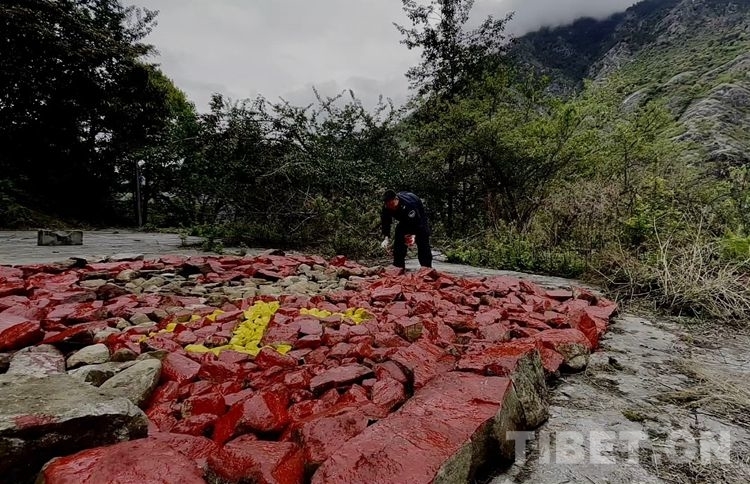 中國西藏網(wǎng)訊 “這些石頭都是地震過后山體滑坡遺留下來的,我們現(xiàn)在把它搬過來砌成黨旗,也算是充分發(fā)揮它的作用了?!痹撜救朦h積極分子徐新新一邊搬著石頭一邊對(duì)記者說道。