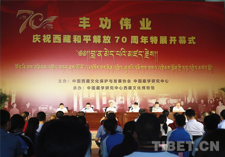 中國西藏網(wǎng)訊 2021年6月29日,由中國西藏文化保護(hù)與發(fā)展協(xié)會、中國藏學(xué)研究中心主辦的“豐功偉業(yè)——慶祝西藏和平解放70周年特展”在中國藏學(xué)研究中心西藏文化博物館開幕。中國西藏文化保護(hù)與發(fā)展協(xié)會副會長斯塔、中國藏學(xué)研究中心黨組書記陳宗榮出席開幕式并致辭。中國藏學(xué)研究中心總干事鄭堆主持開幕式。中央宣傳部、中央統(tǒng)戰(zhàn)部相關(guān)同志和有關(guān)專家學(xué)者等百余人參加開幕式。