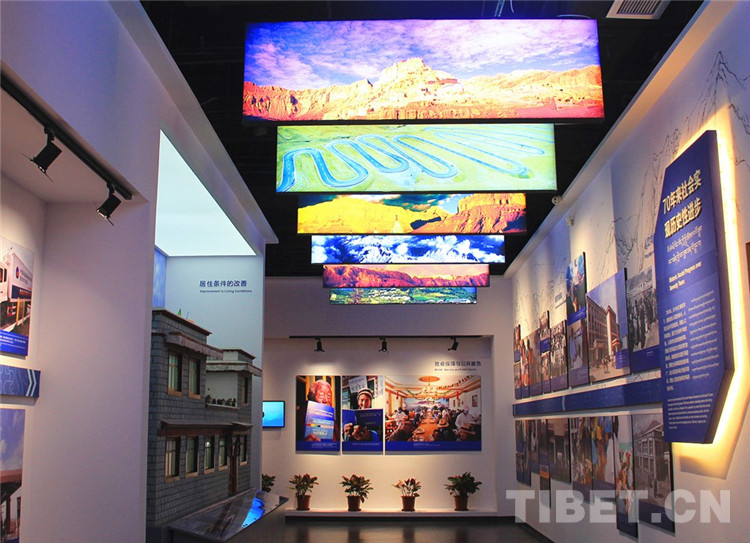 據(jù)陳宗榮介紹,“豐功偉業(yè)”展覽以西藏和平解放70年光輝歷程為主線,設(shè)計(jì)了“社會制度實(shí)現(xiàn)偉大飛躍”“新時(shí)代新飛躍”“西藏的發(fā)展進(jìn)步根本在于中央的關(guān)心”等7個(gè)主題展區(qū)。展覽運(yùn)用350多幅圖片、61件(套)珍貴實(shí)物和文獻(xiàn),采用虛擬現(xiàn)實(shí)、多媒體互動等現(xiàn)代科技手段,利用實(shí)物模型、場景復(fù)原、幻影成像、三維模型等多種形式,集中展現(xiàn)了70年來西藏發(fā)生的歷史性轉(zhuǎn)變、取得的歷史性成就。