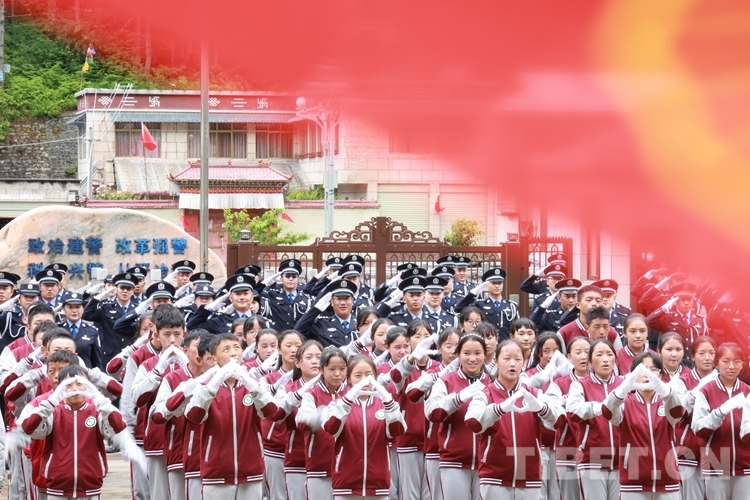 圖為西藏亞?wèn)|出入境邊防檢查站聯(lián)合亞?wèn)|縣中學(xué)開(kāi)展主題活動(dòng)