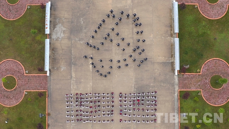 圖為西藏亞?wèn)|出入境邊防檢查站組織全站民警和140余名中學(xué)生組成“黨徽下的倒計(jì)時(shí)”方陣,慶祝建黨100周年