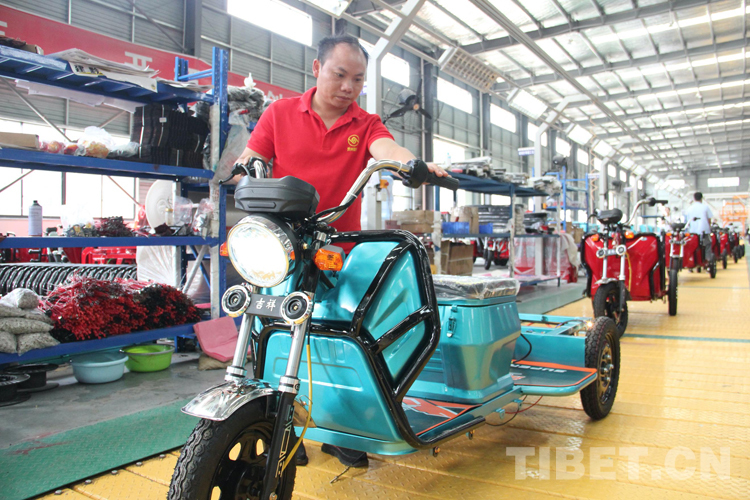 在公司的車間里,各個(gè)流水線上的工人都在有序地忙碌著,在生產(chǎn)線的兩旁整齊地?cái)[放著一排排嶄新的電動(dòng)兩輪摩托車、三輪車。今年4月份剛剛來(lái)到工廠上班的打磨工人柳仕光是2017年搬進(jìn)阿妹戚托小鎮(zhèn)二期的三寶鄉(xiāng)易地搬遷居民,他之前在浙江一帶打工,生活上很不方便,無(wú)法照顧家中的老人和孩子,現(xiàn)在一家六口搬遷到阿妹戚托小鎮(zhèn),自己也在建隆公司當(dāng)起了打磨工人?!皬S子離我家很近,一個(gè)月我能拿2000多元,搬遷前出門買個(gè)菜都要走幾十公里,現(xiàn)在可以在政府分的地上種蔬菜,還能照顧家人,生活比以前好了很多?!?/p>