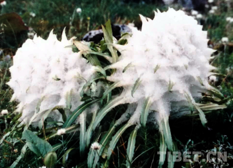 1988年盛夏,我來到雙湖辦事處(現(xiàn)雙湖縣)西亞爾雪山,飽覽了雪蓮的風(fēng)姿。它長著密密的葉子,全身披掛白色的長長的棉毛,宛若棉球。有趣的是,它棉毛交織,形成了無數(shù)的“小溫室”,創(chuàng)造了自身的小氣候。白天,高原上火辣辣的陽光對它好像特別偏愛,它從陽光吸收的熱量超過周圍的土壤和空氣。到了夜間,它又施展抵抗寒冷的特殊本領(lǐng),溫度下降的很緩慢。自我保護(hù)的本領(lǐng)使它能有效地保暖御寒,防止水分蒸發(fā),而滿身長長的棉毛又是一頂保護(hù)傘,使自己免遭高原強烈紫外線輻射的傷害。它頂端的條狀花瓣,又常常受到兩面長棉毛的保護(hù)……這些形態(tài)特征和特殊的適應(yīng)性使雪蓮能在高寒貧瘠的高山上生長、繁育、延續(xù)后代。
