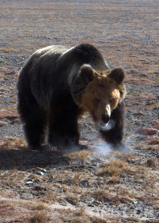 這是生活在羌塘國家級自然保護(hù)區(qū)的國家二級保護(hù)動物棕熊(唐召明2006年攝)