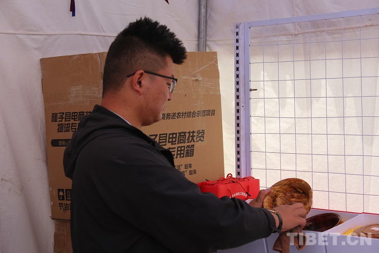 西藏隆子縣電子商務中心工作人員馬天洋說:“電商中心的主要工作就是將當?shù)靥厣r(nóng)牧產(chǎn)品進行資源整合然后在網(wǎng)上銷售,其中最重要的環(huán)節(jié)就是提高產(chǎn)品知名度。打隆物交會就是一個很好的平臺,我們自然不能錯失這樣的機會。”
