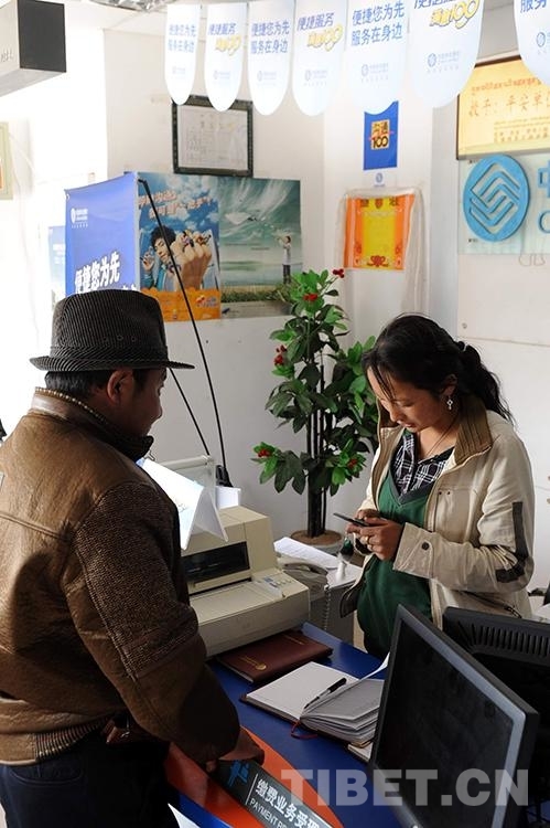 這是雙湖特別區(qū)(現(xiàn)雙湖縣)電信所業(yè)務(wù)人員在辦理手機(jī)業(yè)務(wù)(唐召明2009年8月3日攝)