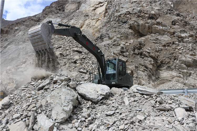 為盡快打通道路,恢復(fù)交通通行,該支隊(duì)官兵采取“雙向掘進(jìn)、多點(diǎn)作業(yè)、先通后拓”的戰(zhàn)法快速對(duì)路面災(zāi)害進(jìn)行清理。在嘎瑪溝塌方災(zāi)害點(diǎn),面對(duì)垮塌下的巨石,官兵們利用多機(jī)協(xié)同作業(yè)的方式,對(duì)巨石進(jìn)行了移除,有效避免了爆破對(duì)村民房屋帶來的損壞。