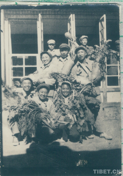 入城后,文工隊分別住在江孜城郊強查洞幾處民房里。初到江孜,后方給養(yǎng)一時運不上來,蔬菜等主副食又得不到有效供給,西藏只有土豆、元根,他們還不能隨便采購。西藏工委和十八軍黨委遵照毛主席“進軍西藏,不吃地方”的指示,提出“搞好生產是進藏部隊長期的一項中心任務”,文工隊同分工委全體工作人員一道在帕拉開墾荒地、播種糧食。天寒地凍又缺少農具,用鐵锨鏟鏟不動,用十字鎬挖,一鎬下去,直冒火星。同志們想方設法烤凍土,翻起一塊一塊像鐵板一樣的凍土,晾在太陽下曬,然后再一鎬一鎬的砸碎、耙平,沒有耕牛,男同志就扛起繩拉犁,女同志平地耙地。江孜海拔4000米以上,平日里都缺氧,此時再加上勞累更是頭暈腦脹,上氣不接下氣,可是他們充分發(fā)揚“不怕苦不怕累”的精神,終于開出一片荒地、撒下種子、收獲了自己種下的糧食,做到了一部分自給,在西藏群眾中產生了很好的影響。文工隊還在住地附近開辟了一塊地種菜,用實際行動徹底粉碎了西藏上層反動集團妄圖用糧食困住解放軍進而餓走解放軍的美夢。