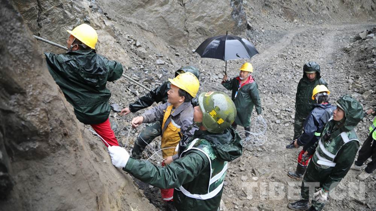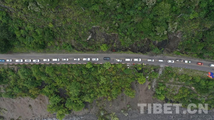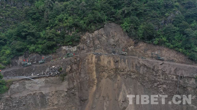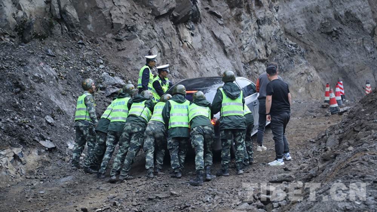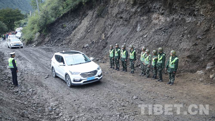 中國西藏網(wǎng)訊 8月28日18時許,經(jīng)過武警第二機(jī)動總隊(duì)某支隊(duì)官兵連續(xù)5天的艱苦鏖戰(zhàn),搶修出一條長215米的便道,使因路基垮塌造成國道318線西藏自治區(qū)林芝波密境內(nèi)段斷通的道路成功恢復(fù)通行,可供小型車輛單向通行。在武警官兵的指揮下,滯留兩端的車輛有序帶隊(duì)安全通過。