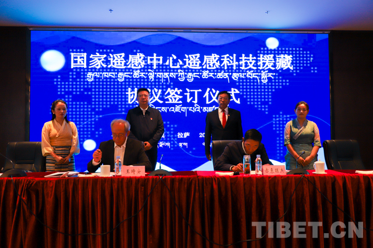 會上,科技部國家遙感中心與西藏自治區(qū)科學(xué)技術(shù)廳簽署了《關(guān)于遙感科技援藏的戰(zhàn)略合作協(xié)議》,并進行了國家遙感中心西藏分部授牌儀式。