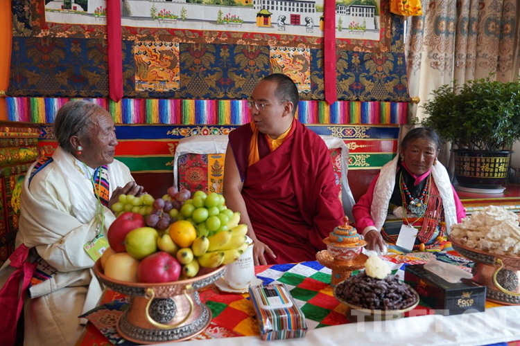 圖為班禪在歐珠家詢(xún)問(wèn)搬遷后的生活情況 攝影:王淑