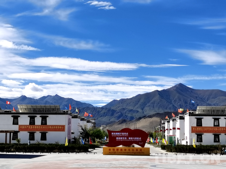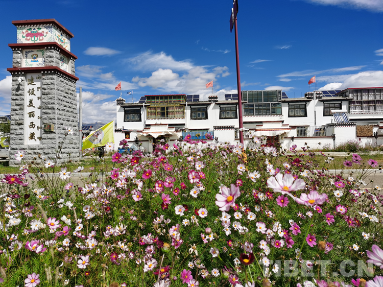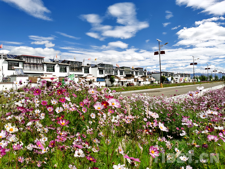 中國西藏網(wǎng)訊 西藏自治區(qū)日喀則市桑珠孜區(qū)江當(dāng)鄉(xiāng)郭加新村,坐落在通往日喀則和平機(jī)場的拉日高速旁,一個(gè)鮮花盛開的搬遷村莊,錯(cuò)落有致的藏式二層小樓,富有民族特色的庭院廣場,寬敞、整潔、一片祥和的安寧景象。