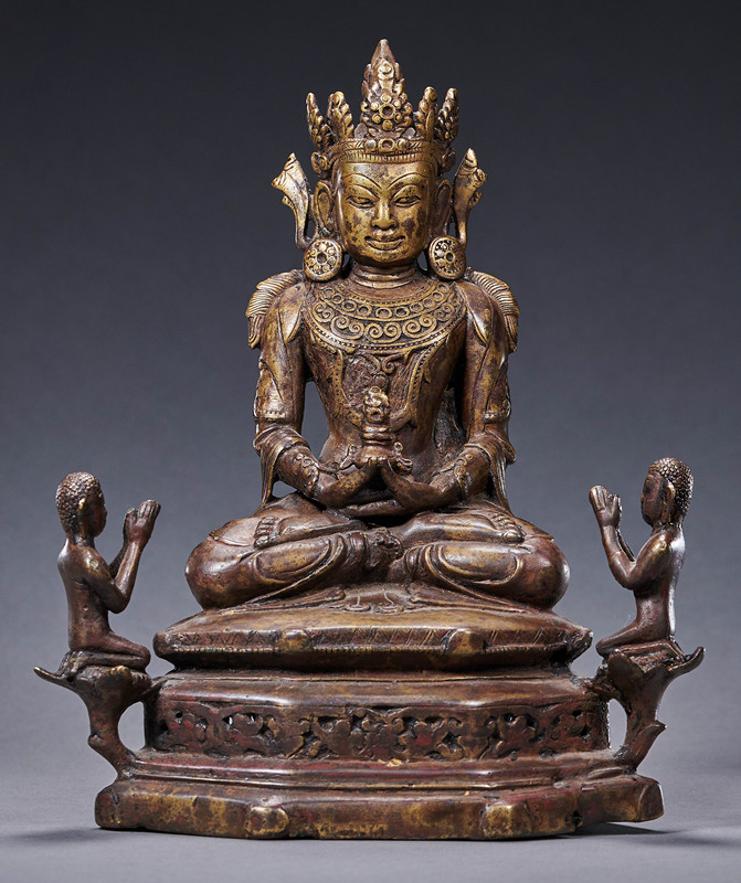 圖為明末清初黃銅同侍從無(wú)量壽佛 國(guó)家文物局供圖 攝影:羅征