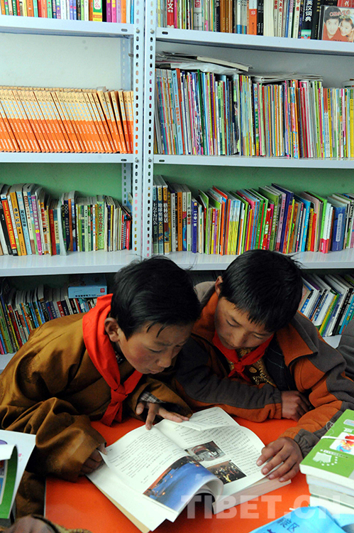 這是西藏那曲地區(qū)那曲縣(現(xiàn)那曲市色尼區(qū))羅瑪鎮(zhèn)中心小學(xué)學(xué)生在新建的“愛(ài)心書(shū)屋”快樂(lè)地讀書(shū)(唐召明2014年5月29日攝)